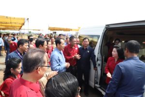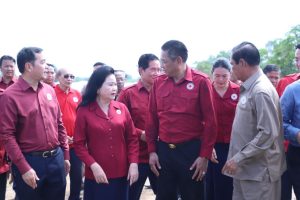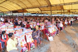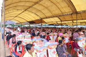 (ត្បូងឃ្មុំ) ៖ សម្ដេចកិត្តិព្រឹទ្ធបណ្ឌិត ប៊ុន រ៉ានី ហ៊ុនសែន ប្រធានកាកបាទក្រហមកម្ពុជា អញ្ជើញចុះសួរសុខទុក្ខ និងចែកអំណោយមនុស្សធម៌ ជួយសម្រាលការលំបាកជូនប្រជាពលរដ្ឋរងគ្រោះដោយទឹកជំនន់ ចំនួន ១,៨០០ គ្រួសារ មកពីភូមិចំនួន ១៤ នៃឃុំជីរោទ៍ទី១ ឃុំទន្លេបិទ និងឃុំបឹងព្រួល ក្នុងស្រុកត្បូងឃ្មុំ ដែលពិធីនេះធ្វើឡើង បរិវេណដីទួលសុវត្ថិភាព ឧកញ៉ា វ័ន ប៊ុនថៃ ស្ថិតនៅភូមិព្រែកតូច ឃុំទន្លេបិទ ស្រុកត្បូងឃ្មុំ ខេត្តត្បូងឃ្មុំ នៅព្រឹកថ្ងៃ៥ ខែតុលា ឆ្នាំ២០២៥។