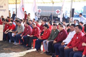ពិធីនេះមានការអញ្ជើញចូលរួមពីសំណាក់ ឯកឧត្តម ជា សុផារ៉ា ឧត្តមប្រឹក្សាផ្ទាល់ព្រះមហាក្សត្រ ឯកឧត្តម វង សូត អនុប្រធានទី ២ នៃរដ្ឋសភា និងឯងឧត្តម គន់ គីម ទេសរដ្ឋមន្ត្រីទទួលបន្ទុកបេសកកម្មពិសេស និងជាអនុប្រធានទី១ នៃគណៈកម្មាធិការជាតិគ្រប់គ្រងគ្រោះមហន្តរាយ ឯកឧត្តម អ៊ាង សុផល្លែត រដ្ឋមន្ត្រីក្រសួងបរិស្ថាន និងជាប្រធានកិត្តិយសាខាកាកបាទក្រហមកម្ពុជាខេត្តត្បូងឃ្មុំ ឯកឧត្តម ចាយ បូរិន រដ្ឋមន្ត្រីក្រសួងធម្មការ និងសាសនា និងជាអនុប្រធានកិត្តិយសាខាកាកបាទក្រហមខេត្ត ឯកឧត្តម លោកជំទាវ សមាជិក សមាជិកា ព្រឹទ្ធសភា-រដ្ឋសភា អនុប្រធានកិត្តិយសាខា ឯកឧត្តម ប៉ែន កុសល្យ អភិបាលនៃគណៈអភិបាលខេត្តត្បូងឃ្មុំ និងជាប្រធានគណៈកម្មាធិការសាខាកាកបាទក្រហមកម្ពុជាខេត្ត ឯកឧត្តម ឡុង ធាម ប្រធានក្រុមប្រឹក្សាខេត្ត ឯកឧត្តម លោកជំទាវ លោកឧកញ៉ា លោក លោកស្រី សមាជិក សមាជិកា អ្នកស្ម័គ្រចិត្ត យុវជនកាកបាទក្រហមកម្ពុជា និងបងប្អូនប្រជាពលរដ្ឋ យ៉ាងច្រើនកុះករ។
